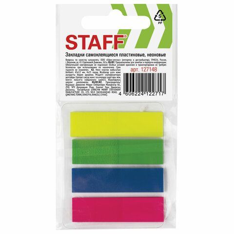Закладки клейкие пластиковые 12х45мм 4 цв х25л неон STAFF 1/30/540 оптом и в розницу в Альметьевске купить