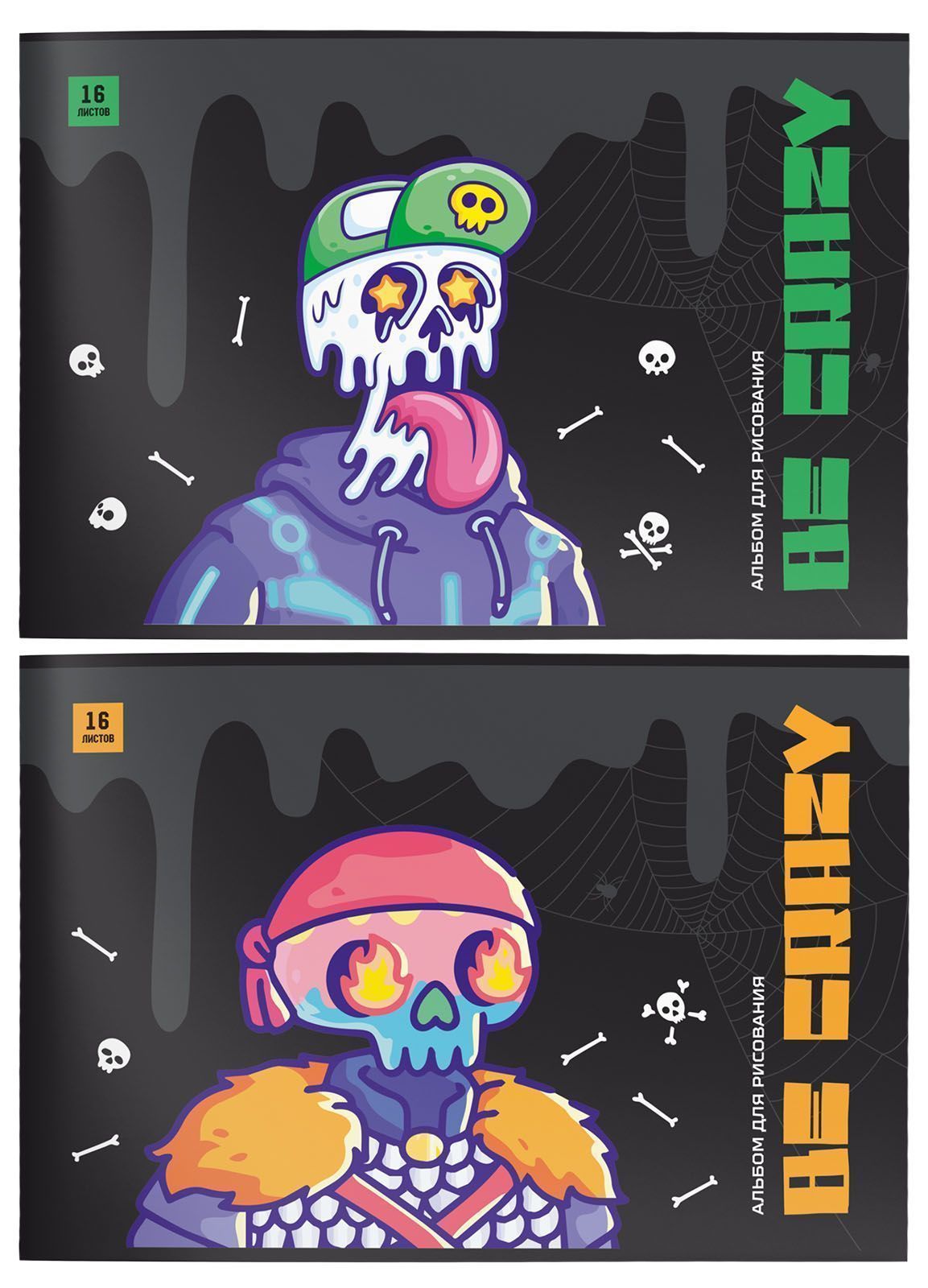Альбом для рисования 16л А4 на скрепке Schoolformat СКЕЛЕТОНЫ 1/70