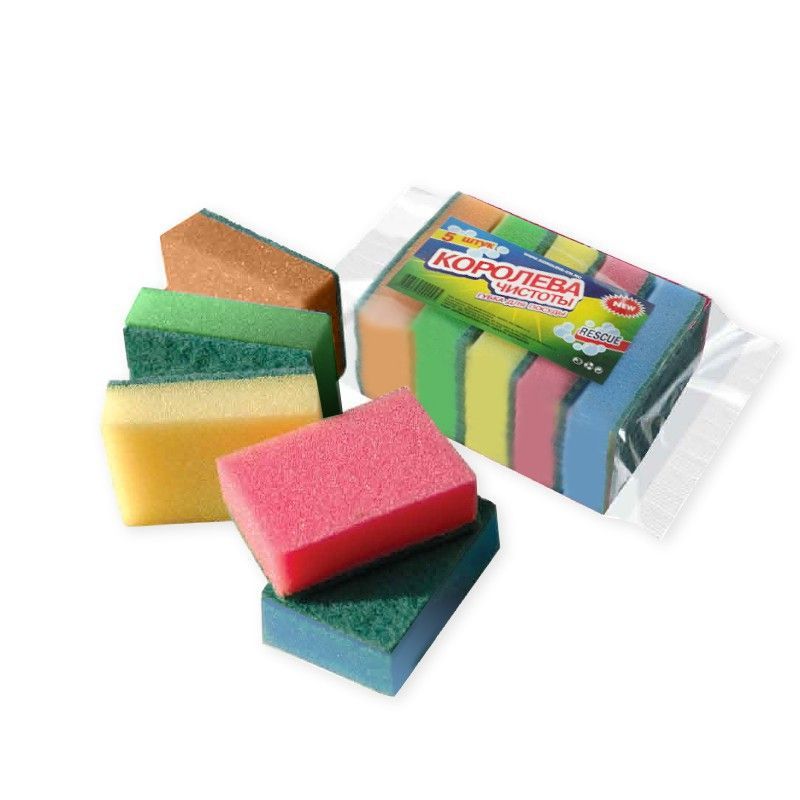 Губка для посуды макси (5шт) 120х90х30мм МегаМакс Королева Чистоты 1/35 – купить хозяйственные товары в розницу с доставкой