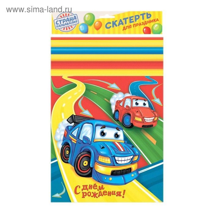 Скатерть нетканный материал 130х180см С Днем рождения! Тачки 1/250 купить в Альметьевске с доставкой оптом и в розницу
