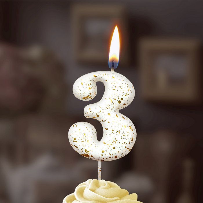 —Свеча для торта Белые брызги Цифра 3 1/30