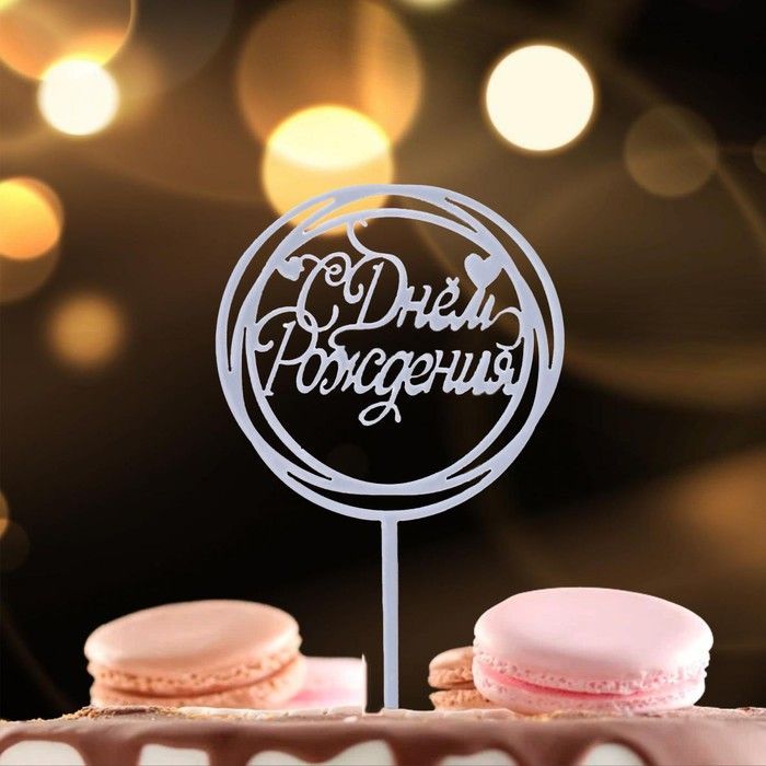 Топпер для торта С днем рождения, серебряный 1/20 оптом и в розницу в Альметьевске, цены в каталоге с доставкой